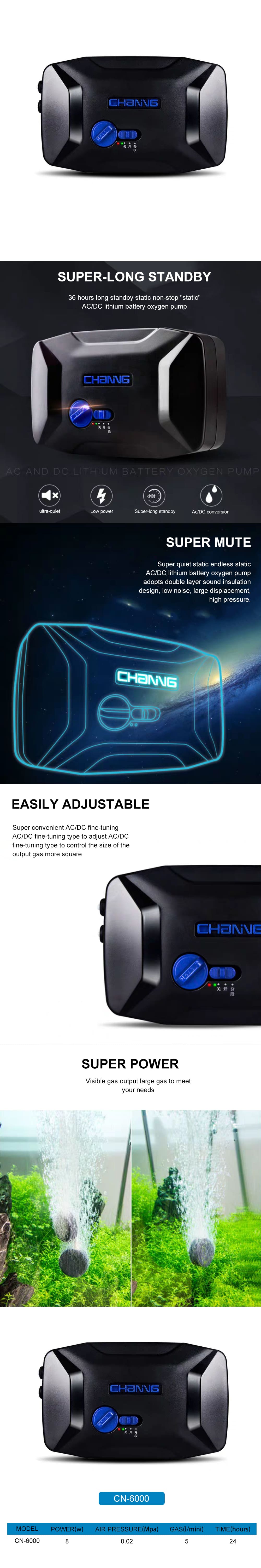 The product has a built-in rechargeable lithium battery, which can be recycled for more than 500 times. It can be automatically switched between AC and D. The oxygen pump can work for a long time when the power is cut off, and the segmented work can last for a longer time. The design can be adjusted at will to control the size of the air output, which is more convenient.