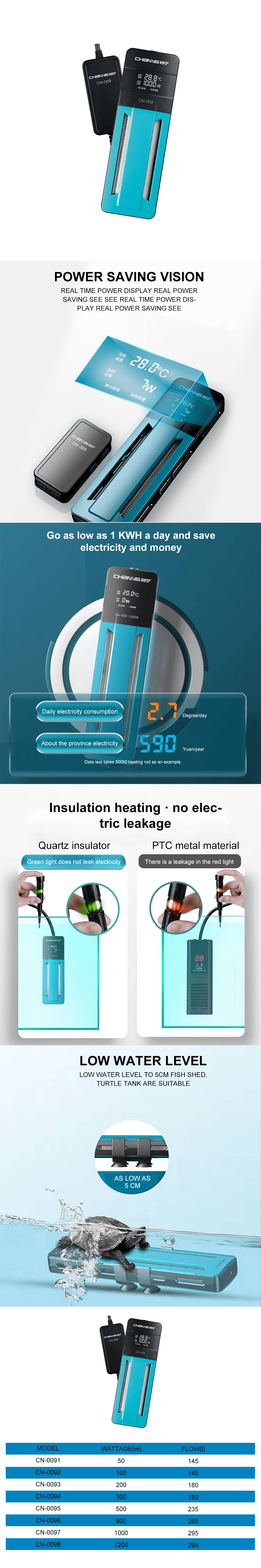 This product is an AI intelligent submersible aquarium heater. When the aquarium heater rod is exposed to the water surface, the heating will stop and an alarm will occur. It does not dry and burns. , for freshwater and seawater.