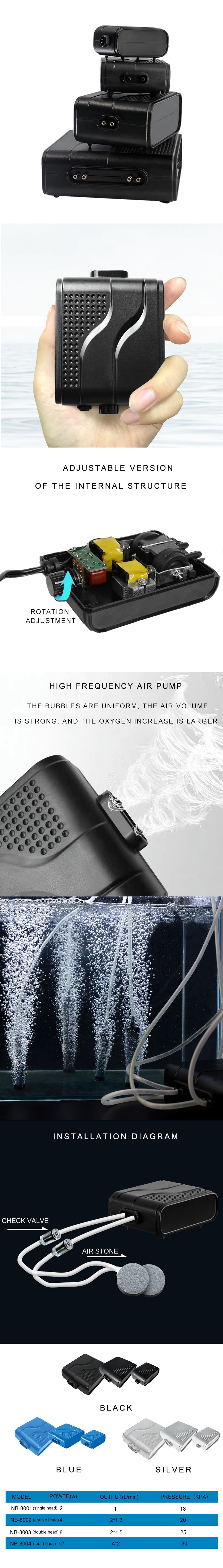 This product is an aquarium silent oxygen pump. The shell is made of high-quality high-quality ABS material, which has good sealing performance. The small body has strong air volume. The internal copper core motor is energy-efficient, energy-saving and power-saving. It can supply oxygen lastingly and steadily. The rubber pad can effectively reduce the noise caused by vibration, and it can be rotated to adjust the amount of oxygen, which is suitable for a variety of fish tanks.
