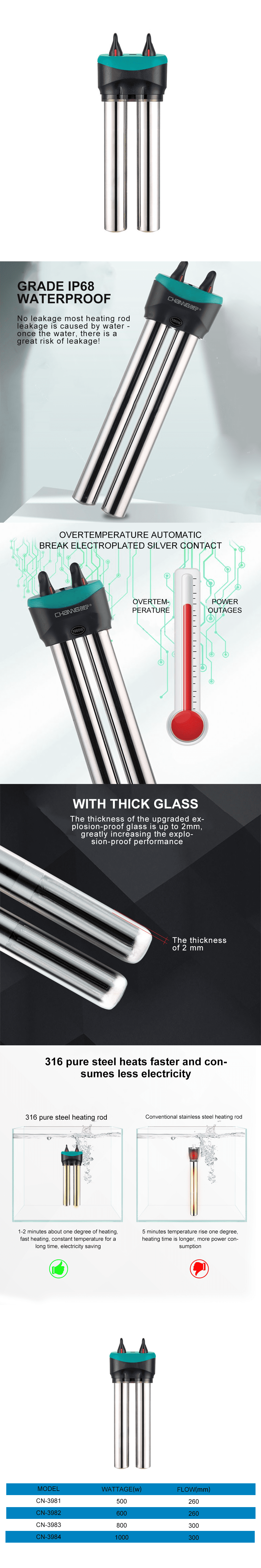 The product is safe to heat, refuses to cook fish, it can heat up to about one degree in 1-2 minutes, fast heating, constant temperature for a long time, more power saving, corrosion resistance and precise temperature control, ip68 waterproof, no leakage, strong suction cup, firm and not falling off.
