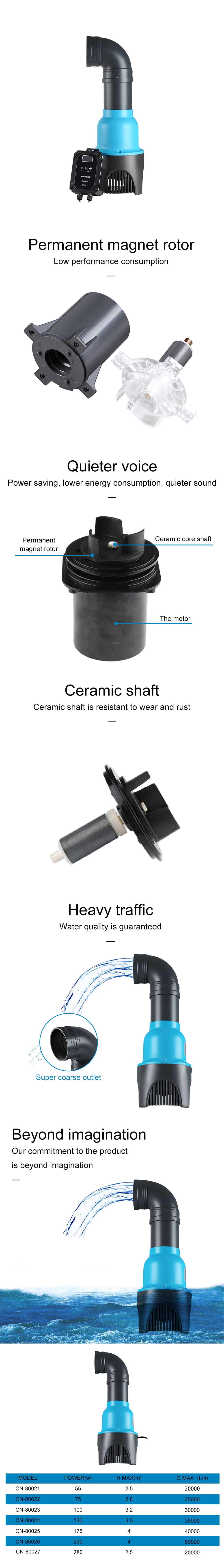 This product is an aquarium sine wave inverter pool pump tube type, with a wide range of applications, a variety of specifications to choose from, bottom filter to prevent clogging, large flow water outlet, circular water outlet, large flow, water shortage protection, silent design, The frequency conversion technology is safe and energy-saving, and the pumping is strong.
