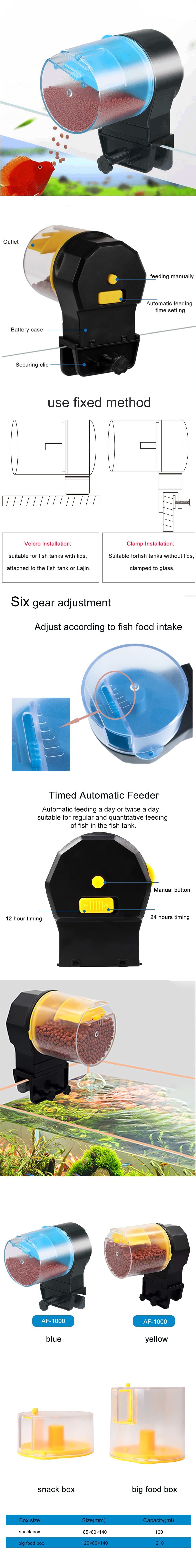 This product is an automatic timing feeder for aquariums. It is installed with a fixed clip, suitable for a variety of fish, suitable for a variety of feeds, easy to control the amount of fish food, remote control, spray feeding, built-in speed regulator, waterproof and moisture-proof.