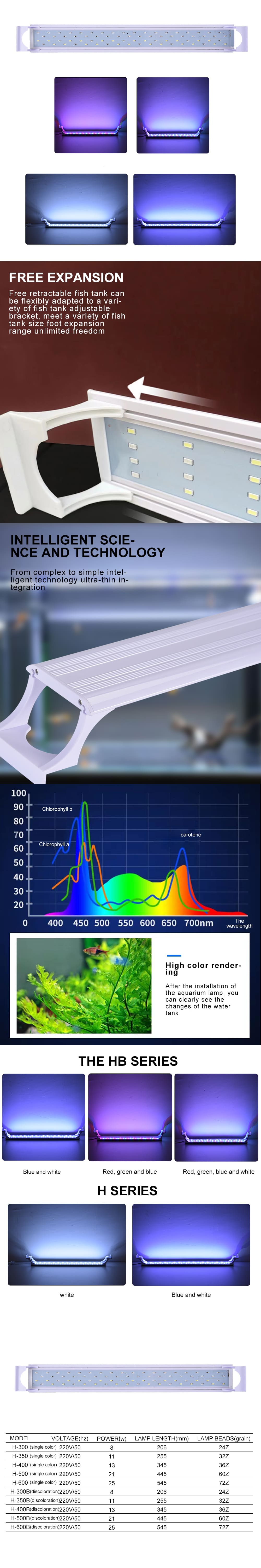 This product is made of high-strength shell material, fast heat dissipation, light and thin body, longer service life, full-spectrum LED waterproof lamp beads, strong penetrating power, simulating natural light to promote the photosynthesis of fish, water and grass to enhance the color and restore the real natural color Close to nature, the bracket can be adjusted flexibly and retractably adjust the edge of the inner frame according to the size of the aquarium, and the multi-color lighting can be selected for a comfortable and stunning landscaping effect.