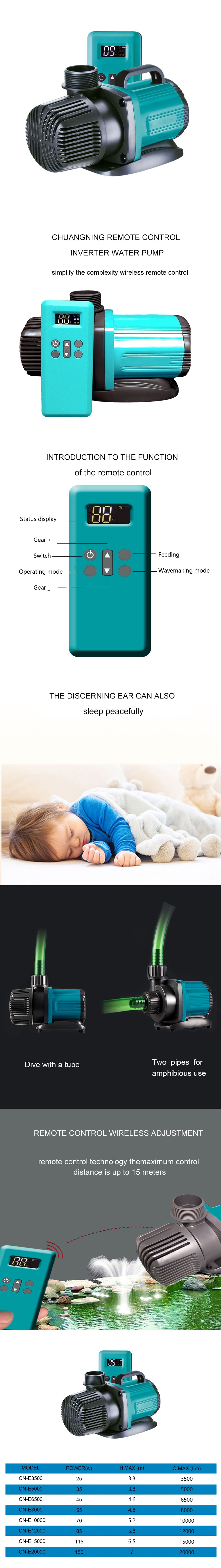 This product is an ECO intelligent frequency conversion pump for aquariums, with a wide range of applications, a variety of specifications to choose from, with remote control wireless adjustment, ultra-quiet, frequency conversion power saving, adjustable flow size, water shortage protection, prevent dry burning, and durable.